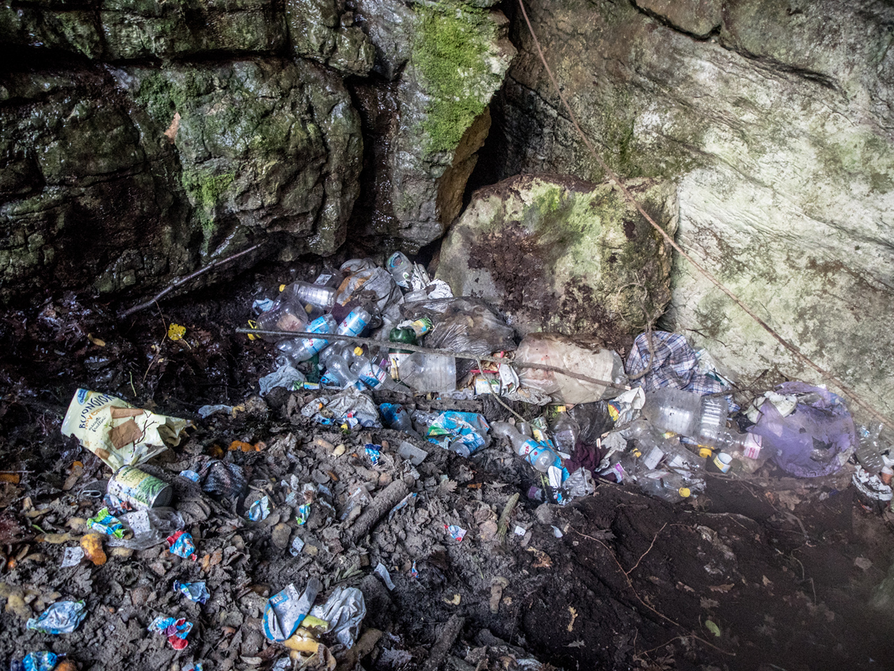 Con nostro profondo rammarico ci preme segnalare che nell’ingresso della grotta e alla base del primo pozzo sono presenti grossi depositi di rifiuti organici e plastica (alcuni molto recenti). Considerando anche che nella cavità è presente l’unica colonia di Miniottero (una specie di pipistrello) finora segnalata sul massiccio degli Alburni (Vernier, 1982), rende la situazione ancora più grave. Abbiamo provveduto a segnalare questa scoperta, documentandola con queste foto, al gruppo locale GESMA che si occuperà di denunciare il tutto alle autorità competenti.
